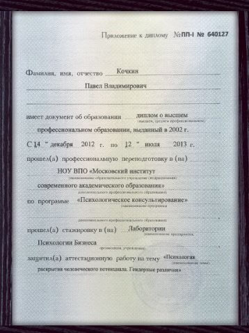 - МосГУ, РАГС при Президенте РФ, Эриксоновский университет.